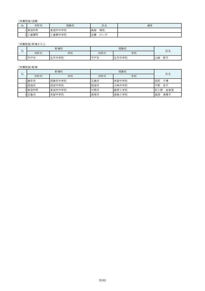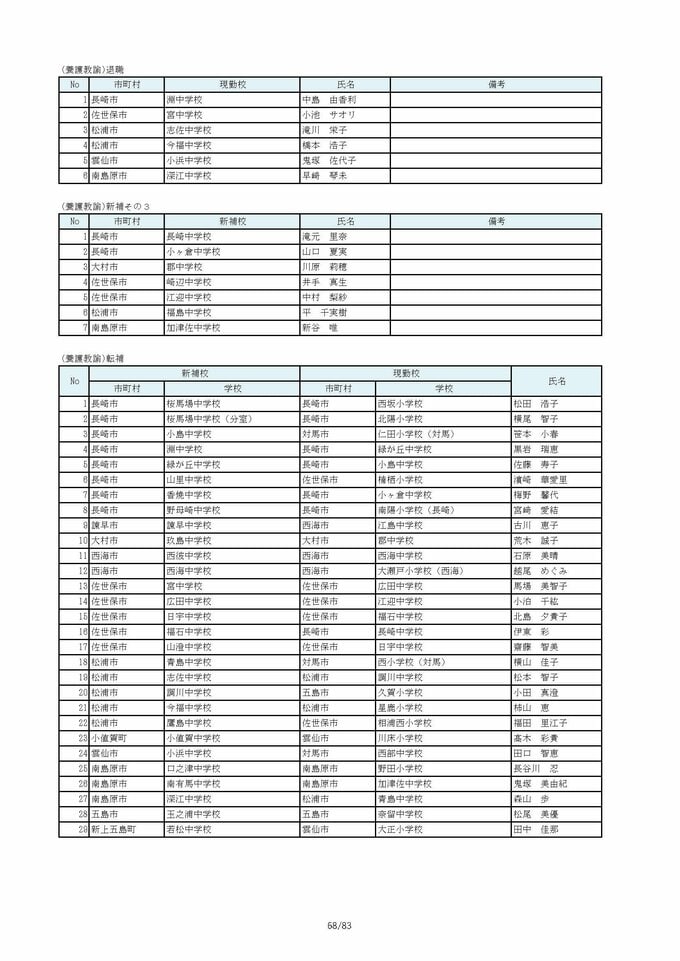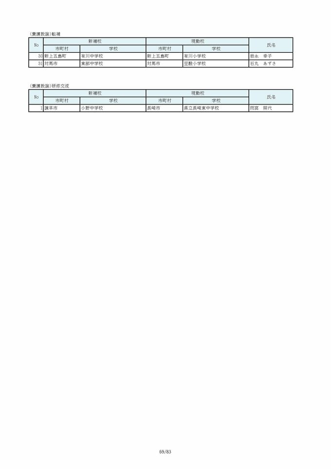 長崎県教職員人事2026 あの先生はどこへ?中学校・義務教育学校(異動・退職・新採用) 全掲載