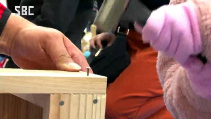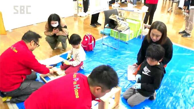 SBCこどもフェスタは長野市のトイーゴ一帯で開かれています。このうち、イスを作るコーナーでは、子どもたちは木材を組み立てながらくぎで固定するなどの作業を体験し、イスを完成させいました。