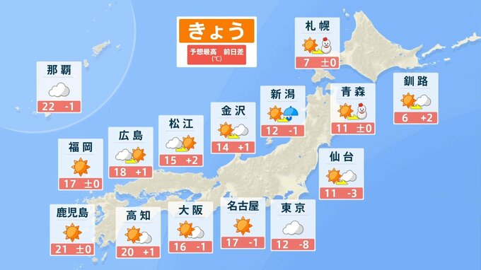 仙台:11℃ 新潟:12℃