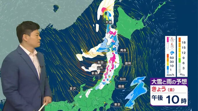 20日(金)夕方以降は、上空に強い寒気を伴う低気圧や前線が北日本や北陸に近づきます。特に北日本は平野部でも雪が降り、山沿いを中心に大雪や猛ふぶきとなるおそれがあります。3月後半でも、大雪や猛ふぶきによる交通障害にお気をつけください。