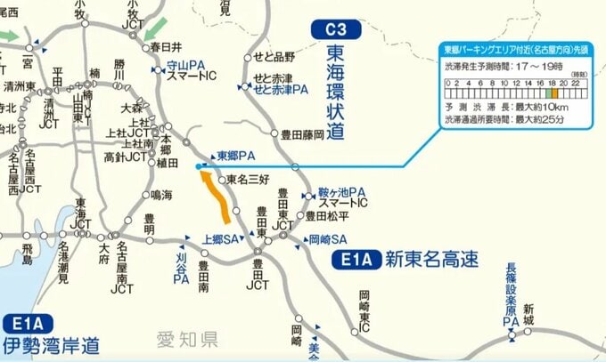 ・豊田上郷SIC→日進JCT 東郷PA付近 10キロ