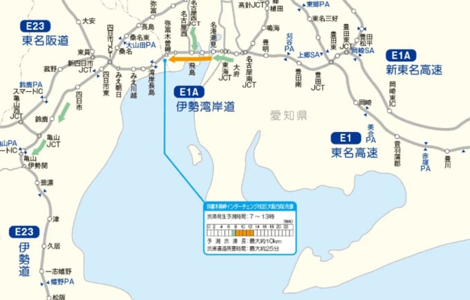 ・名港潮見IC→弥富木曽岬IC 弥富木曽岬IC付近 10キロ