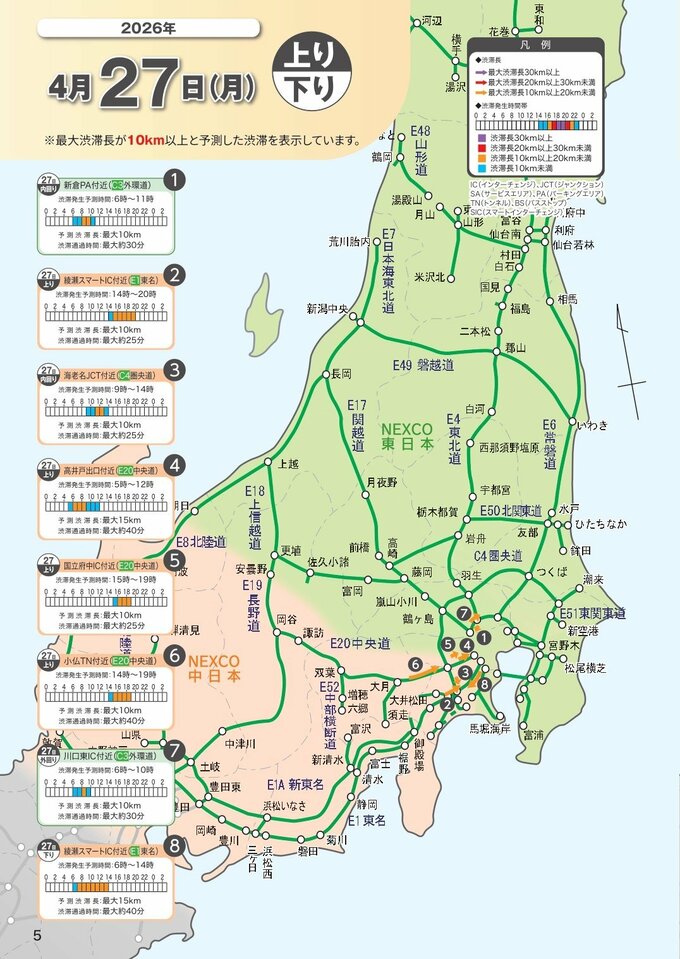 「渋滞予想」4月27日(月)はどこが混む?【東日本】