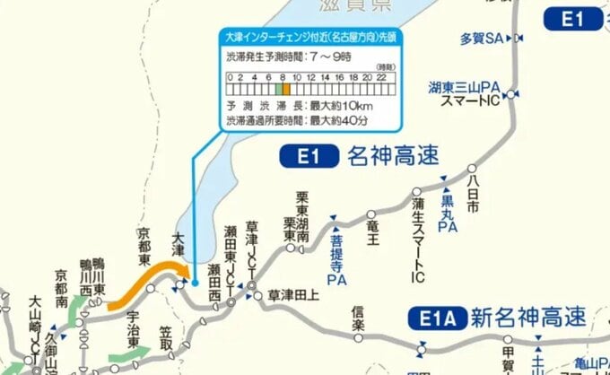 ・京都南IC→大津IC 大津IC付近 10キロ