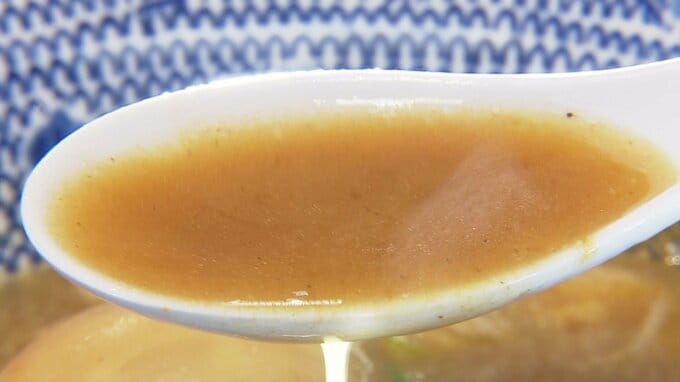 自慢のスープは、店内で仕込んだ魚介と豚骨のダブルスープ。昆布や鰹節、サバ節などの魚介は、一日寝かせて旨味を抽出しています。そのスープに合わせるのが、特注の極太麺。本店のクオリティを守り抜いた至極の一杯を楽しめます。