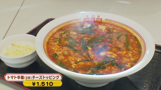 また、トマトの酸味と辛さが溶け合う「トマト辛麺」もオススメ。お好みでチーズをトッピングでき、まろやかな辛さがやみつきになること間違いなし!