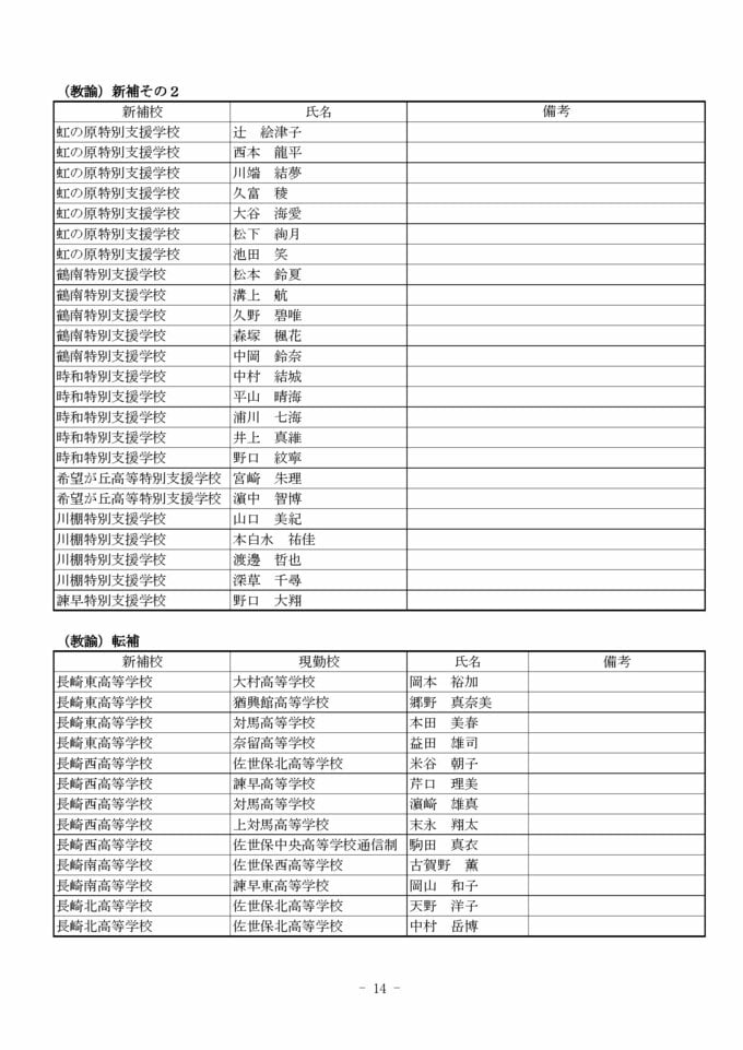 長崎県教職員人事2026 あの先生はどこへ?高校・特別支援・県立中(異動・退職・新任)全掲載