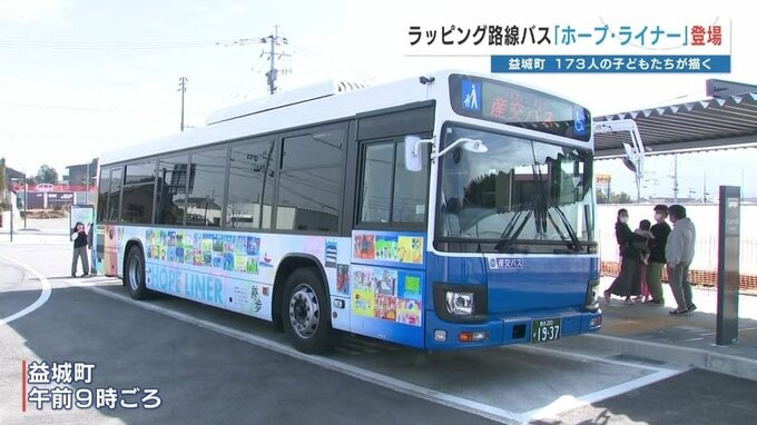 熊本地震の発生から10年になるのを前に、最大震度7を2回観測した熊本県益城町で、子ども達が描いた絵をラッピングした路線バスがお披露目されました。明日(3月21日)から益城町と熊本市の間で走る路線バス「ホー…