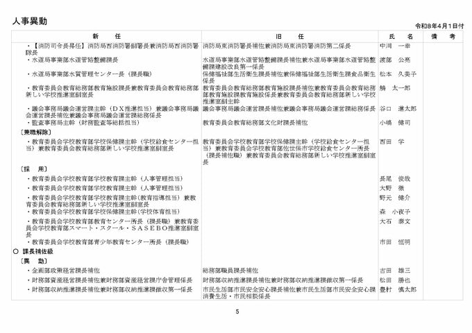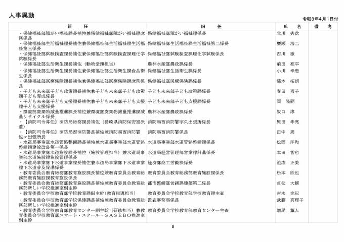 長崎県佐世保市人事異動2026 異動総数689人「拡大する防衛需要の取り込み」推進【係長級以上 全掲載】