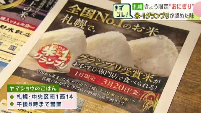 日本一に輝いたお米のおにぎりがきょう(20日)だけ、札幌市で食べられます。