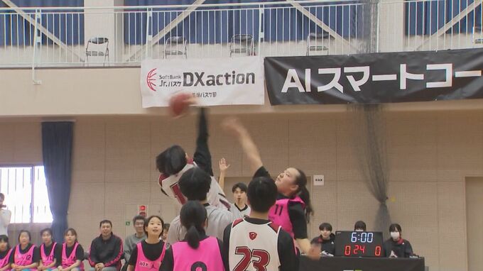 ミニバスとは違う大人の高さのゴールでも果敢に攻めて次々とシュートを決めていきます。