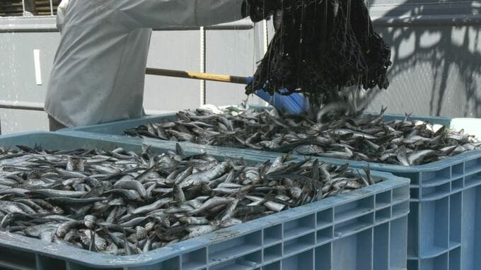 この日も9隻のまき網漁船によっておよそ1000トンのマイワシが水揚げされました。