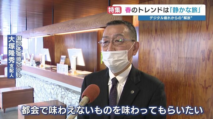 瀬の本高原ホテル 大塚隆秀支配人「自然に抱かれるというような雰囲気のホテルとにかく自然を感じるには十分ニーズに合う。都会で味わえないものを味わってもらいたい」