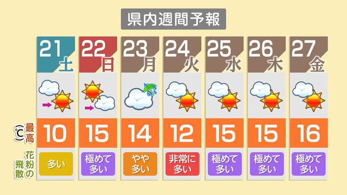 ただ花粉の飛散予想は、21日は『多い』。