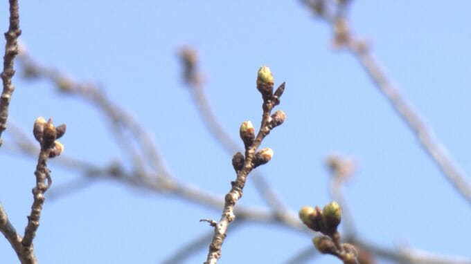 一方、岡山後楽園のソメイヨシノの標本木はまだつぼみのまま。開花は少し先となりそうです。