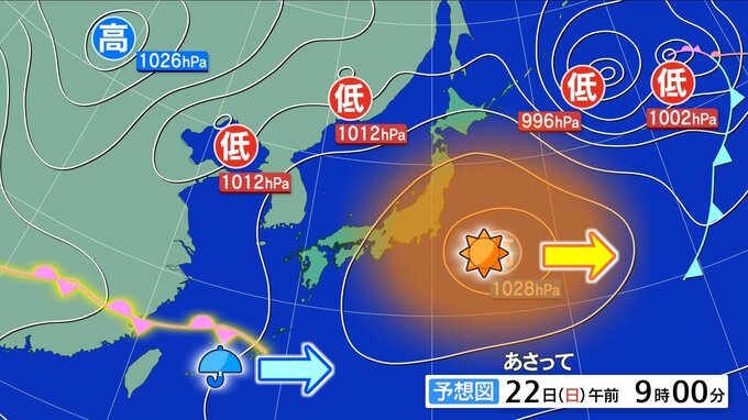 【3/21・22(土日)広島天気】土曜は晴れ 日曜は午後から雨 雨脚強まる時間も 中国放送 2026年3月20日(金) 18:51 国内 天気 22日(日)前線や低気圧が近付く 午後から雨 あさって22日(日)は、高気圧は東へ進み、西からは前線や低気圧が近付く見込みです。そのため、午前中は日差しが届きますが、午後からは天気下り坂でしょう。夜には雨脚が強まる時間がありそうです。
