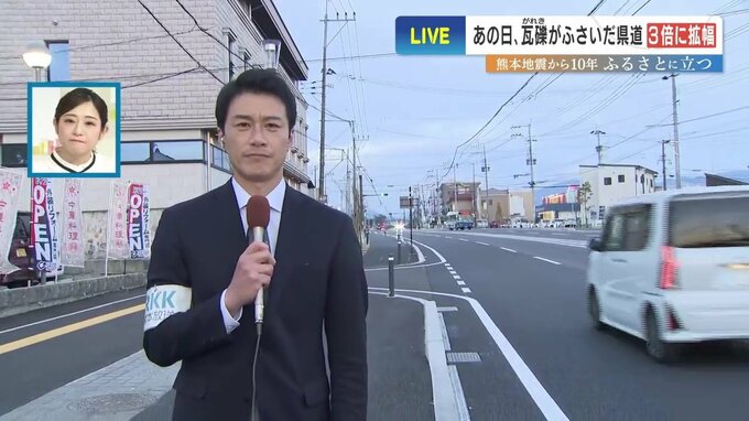 記者「住民に話を聞くと、道が便利になった分、益城町の人たちがそのまま熊本市に流れてしまうんじゃないか、そんな心配を口にする人もいました。そして、実際この時間、歩道を歩いている人はほとんどいないので、道が広くなった分ちょっと寂しさを感じるという面もある。熊本地震から10年が経とうとしていますが、今後益城町はどんな町に変化していくんでしょうか」
