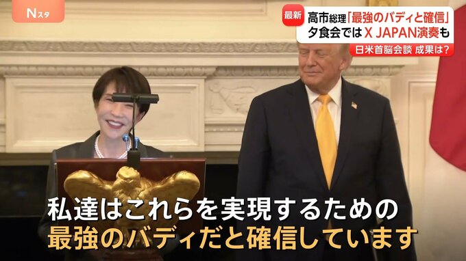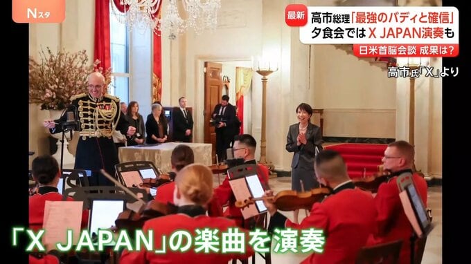 高市総理が大ファンだと公言する、ロックバンド「X JAPAN」の楽曲が演奏されるという気遣いも。