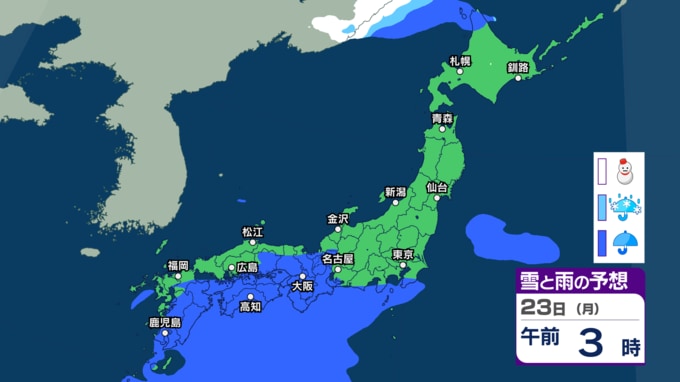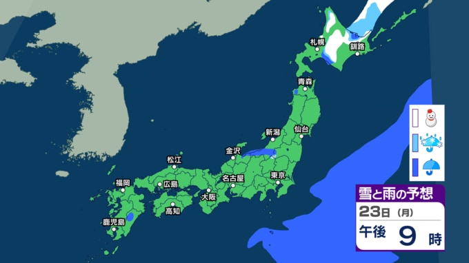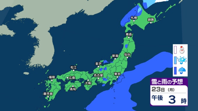 3連休2日目の21日(土)は北日本で“冬の嵐”に 22日以降は西から天気が下り坂 西日本~北日本で急な強い雨などに注意【雨雪のシミュレーション・21日正午更新】 新潟放送 2026年3月21日(土) 12:00 23日(月)の雨と雪のシミュレーション