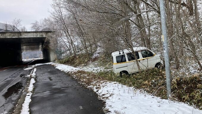 事故があったのは、千歳市協和の道道で、21日午前10時21分ごろ、高架下の外壁に衝突したという内容の110番通報がありました。