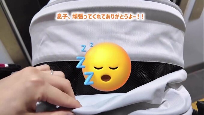 移動中や現場でも息子はよく寝てくれていたようで、「息子、頑張ってくれてありがとうよー!!」と、我が子への愛おしさを綴っています。