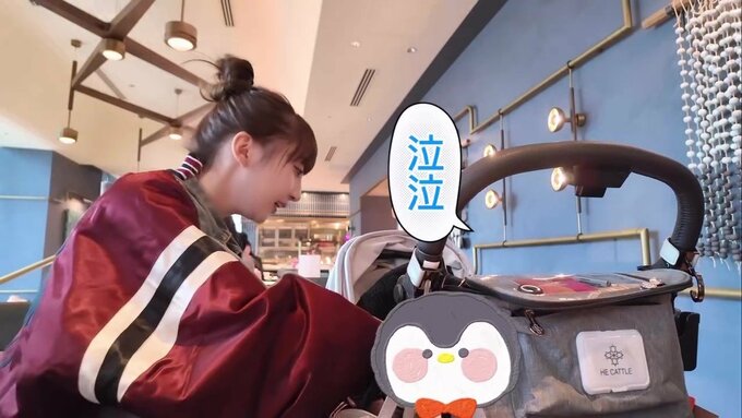カフェでほっと一息つくのも束の間、息子が泣き出す場面もありましたが、母親として優しくあやす姿が収められています。