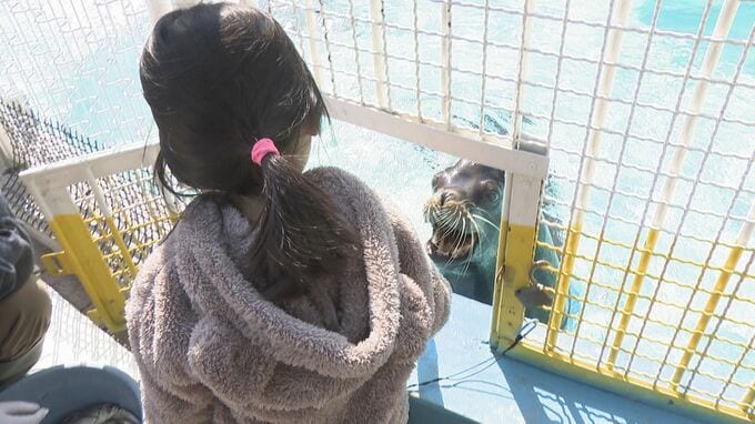 なかでも人気はエサやり体験で、子どもたちは口を開けて待つアシカに、恐る恐る魚を与えていました。