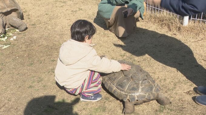 このほか体重100キロほどのゾウガメにリンゴをあげ、甲羅に触れるコーナーも。