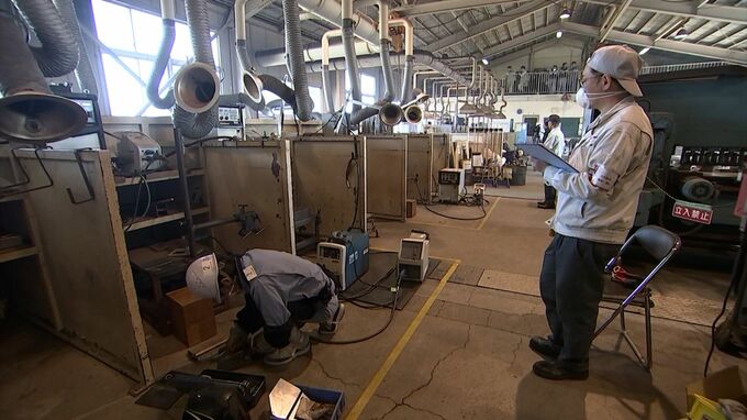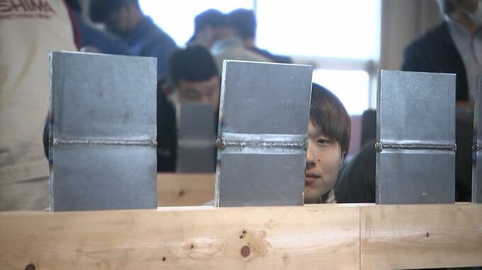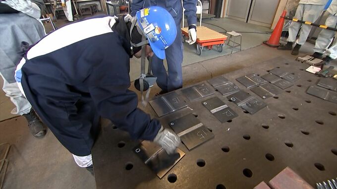 会場では、県内の企業や高校から参加した35人が、溶接した部分の波目(なみめ)の幅や高さ、そして継ぎ目の美しさなど、細部にわたる技を競いました。