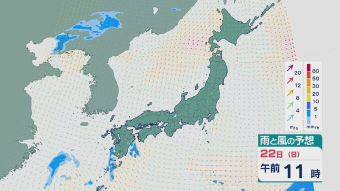 22日(日)から23日(月)は九州をはじめ西日本で雨の降る天気に 九州南部は22日夜にかけて雨脚強まる見込み 雨と風シミュレーション 北陸放送 2026年3月21日(土) 18:42 国内 22日の雨と風の予想ですが、午前中は九州の一部の地域で雨が降るでしょう。