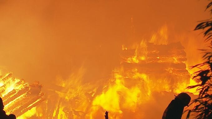 住宅密集地・4軒に延焼、停電も