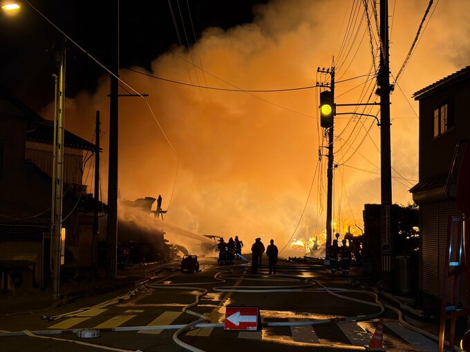 現場は温泉街からも近い住宅が密集する地域で、警察によりますと周辺の店舗や住宅あわせて4軒に延焼していて、覚知から2時間以上たった現在も、消火活動が続いています。