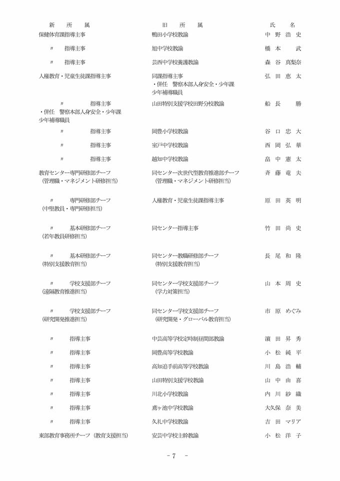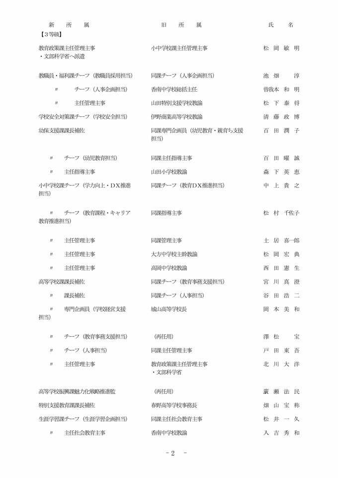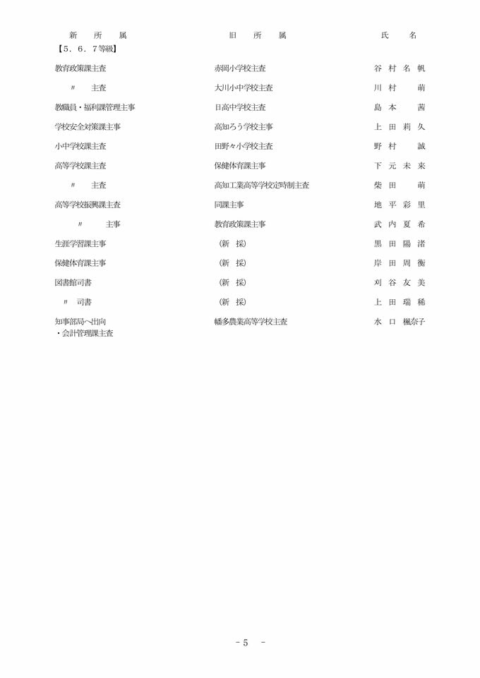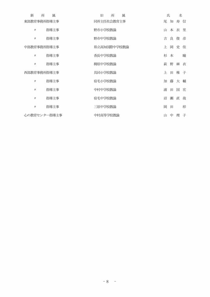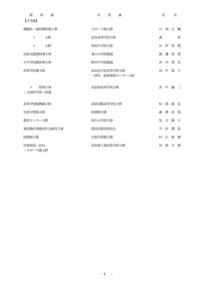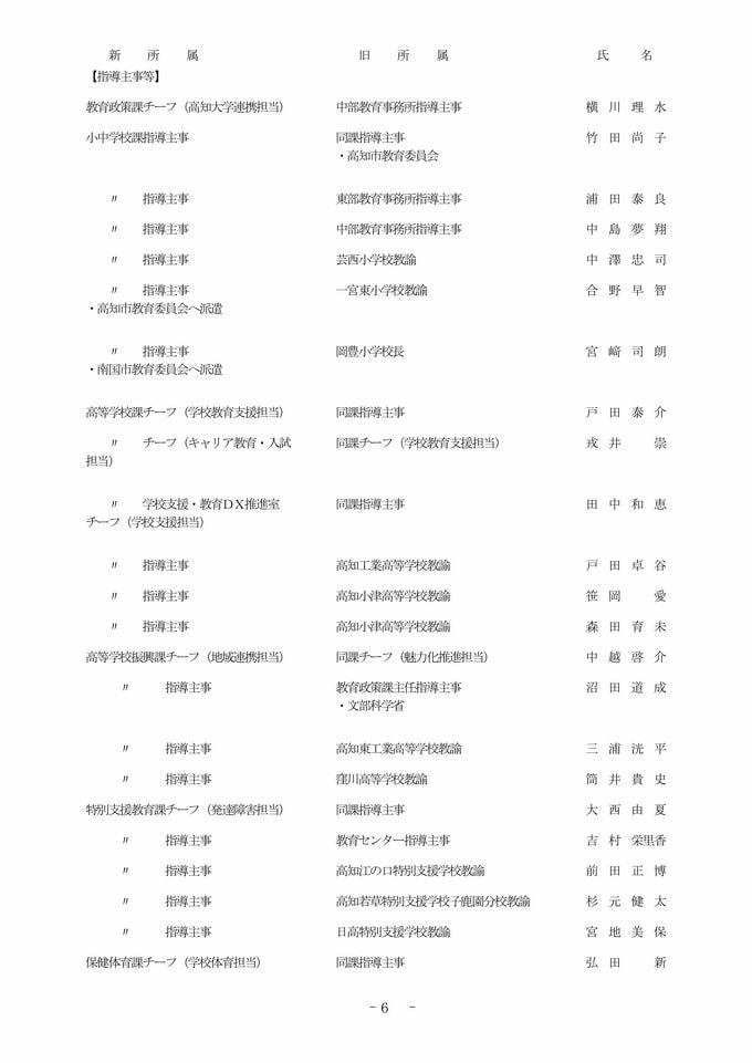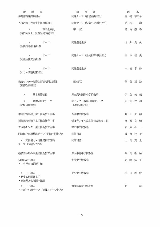 【全掲載】高知県 教職員 2026年度 人事異動③ 教育委員会事務局