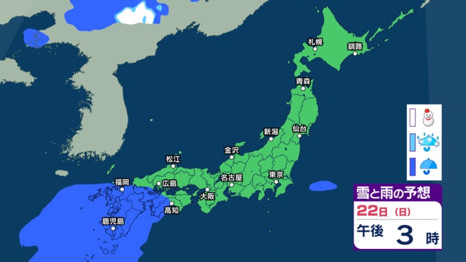 きょう22日は西から天気が下り坂 雷を伴い“バケツをひっくり返したような”激しい雨の所も 今週は東日本~西日本で曇りや雨の日が多くなる見込み【雨雪のシミュレーション・22日午前11時更新】 新潟放送 2026年3月22日(日) 11:00 22日(日)の雨と雪のシミュレーション