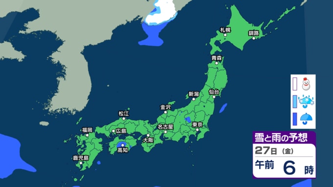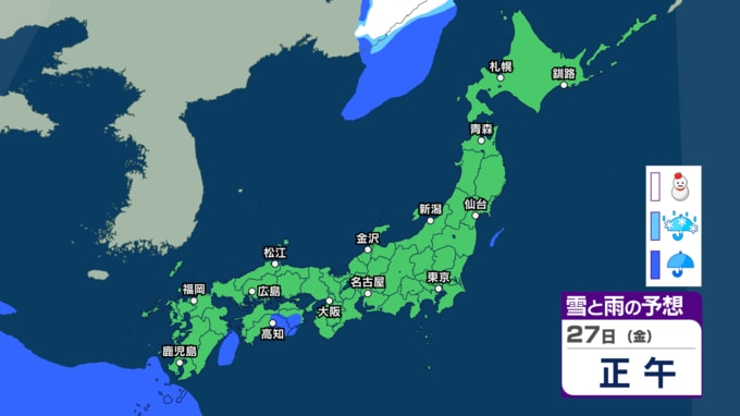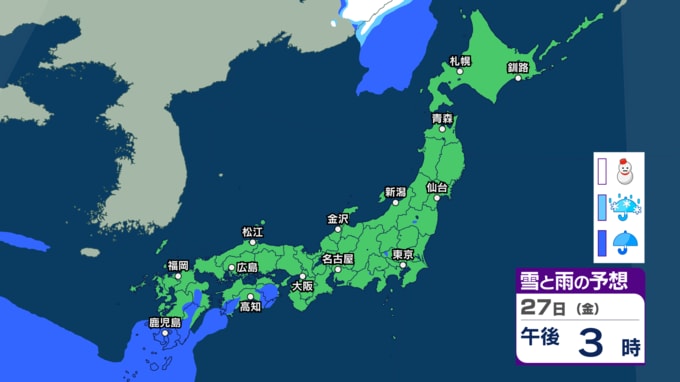 きょう22日は西から天気が下り坂 雷を伴い“バケツをひっくり返したような”激しい雨の所も 今週は東日本~西日本で曇りや雨の日が多くなる見込み【雨雪のシミュレーション・22日午前11時更新】 新潟放送 2026年3月22日(日) 11:00 27日(金)午前0時~午後3時の雨と雪のシミュレーション