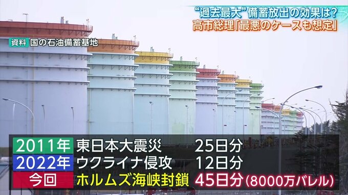 放出量過去最大 石油備蓄の放出始まる