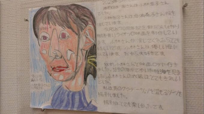 映画「青いライオン」の撮影中に書かれたこのページには、「小林さんは優しい母に似ています。だから大好きです」とあります。