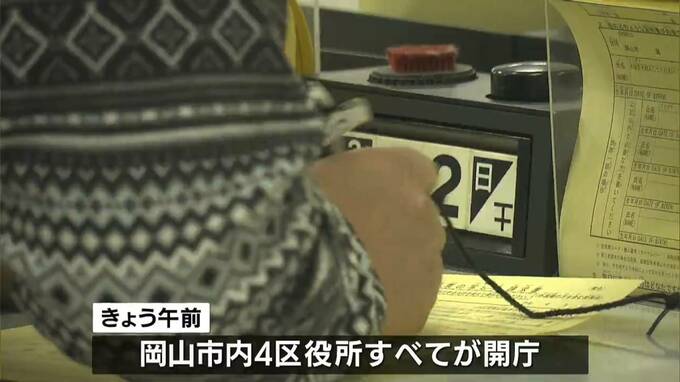 岡山市北区役所では午前8時半に窓口が開かれました。
