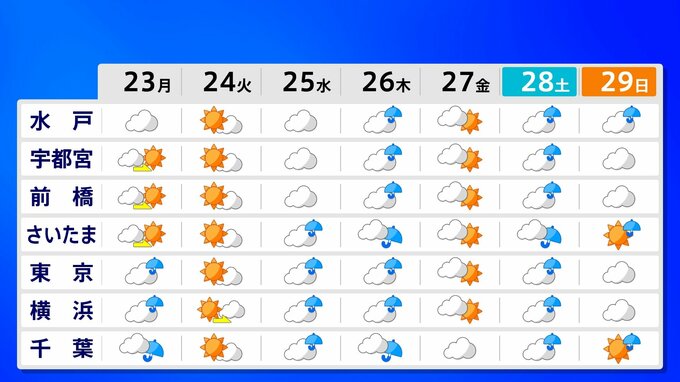《雨雪のシミュレーション》、各都県5か所ずつの《関東地方各都市の週間予報》を画像で掲載しています。