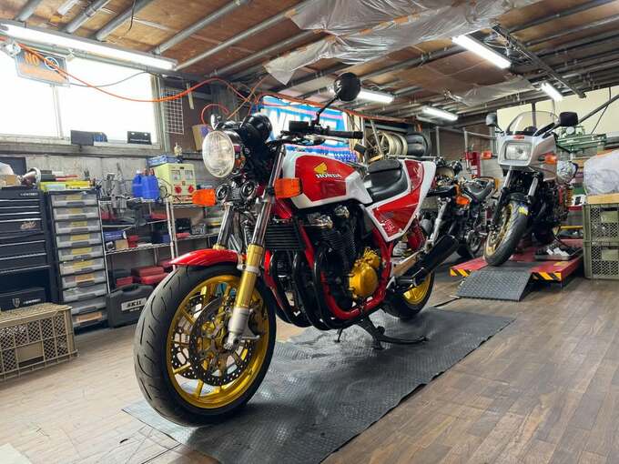 レイザーラモンRGさんは「特攻の拓 真嶋夏生さんの爆音スペシャルCB1100RB1風CB1100完成しました。」と綴ると、写真をアップ。