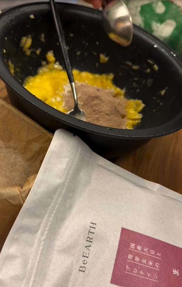 工藤静香さんは「タンパク質ケーキ!笑」と綴ると、ケーキを作成する動画をアップ。