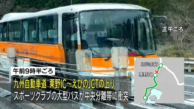 九州自動車道で22日午前、スポーツクラブの大型バスが中央分離帯に衝突し、乗っていた中学生9人がけがをしました。