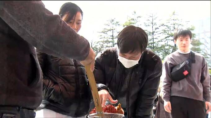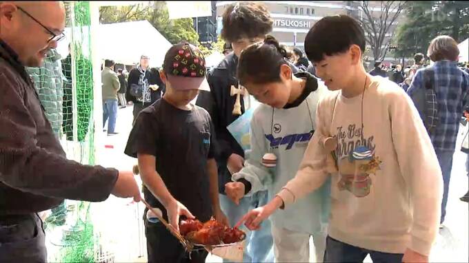 このイベントは、ホヤの消費拡大を図ろうと宮城県内の食品加工会社や飲食店が2019年から開催しているものです。会場では、先着500人にホヤのぷりぷりとした食感やうまみを堪能できる「ほや汁」が振る舞われたほか、串焼きなどのホヤ料理を販売する出店が並びました。