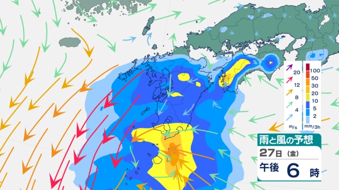 【九州の天気】晴れ間は24日(火)まで…25日(水)は「竜巻・大雨」に注意 雨風シミュレーション 長崎放送 2026年3月23日(月) 08:20 国内 週末にかけて:スッキリしない空模様が続く 🔶雨風シミュレーション(九州地方) 26日(木)以降も雲の多いスッキリしない天気が続きます。シミュレーションでは27日(金)も南部を中心に雨雲がかかる予想です。週末の28日(土)も雨が降り、天気が本格的に回復して晴れ間が戻るのは29日(日)頃になる見込みです。