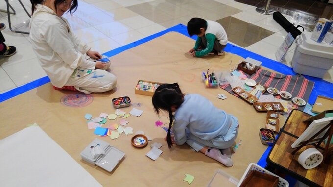 会場の一角では「アートじゆうじかん」と題し、花や葉のモチーフに好きな折り紙やマスキングテープを貼るワークショップを実施。BSNのキャラクター「ハレッタ」との写真撮影会も行われ、子どもたちにとっても楽しい時間となりました。