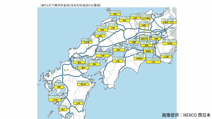 このうち、あす24日(火)午前0時から山陽自動車道の5か所の料金所がETC専用料金所として運用を開始します。
