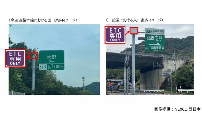 ETC専用料金所の運用開始に合わせて、インターチェンジ付近の高速道路本線と一般道の案内標識に、ETC専用の表示板が設置されるということです。