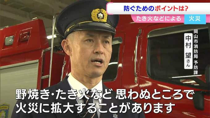 「思わぬところで、自分達の思っている以上に乾燥している状態が続いていますので、野焼き・たき火などから思わぬところで火災に拡大してしまうところがあると思います。また、住宅火災などでもですね、非常に乾燥してますので、燃えると一気に拡大する可能性がありますので、火の取り扱いには十分に注意していただきたいなという風に思っています」