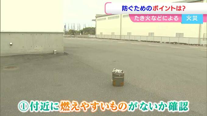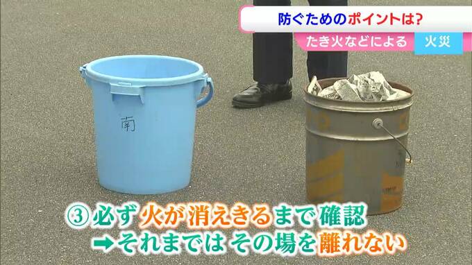 たき火や火入れによる火災を防ぐためのポイントは、(1)消火器具をしっかり準備する(2)付近に燃えやすいものがないか確認(3)必ず火が消えきるまで確認し、それまではその場を離れないの3つです。