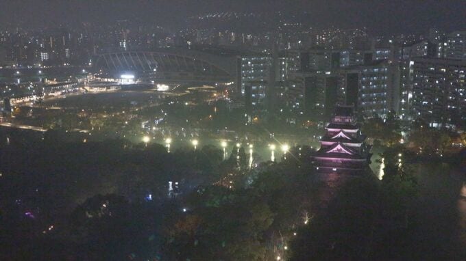 きのう、広島城天守の前で開かれた閉城セレモニー。琵琶奏者の大野友梨子さんによる「祇園精舎」の旋律が響き渡る中、天守が鮮やかにライトアップされました現在の天守は、原爆で倒壊し、1958年に復元された3代目。老朽化などを理由に、およそ68年の歴史に幕を閉じました。